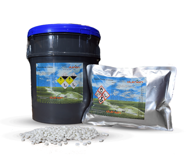 A Dutrion Tablet egy innovatív stabilizált klór-dioxid előállítási forma. A pezsgőtablettás egykomponensű kiszerelések garantálják a lehető legkönnyebb- és leggyorsabb tiszta-stabil klór-dioxid előállítást. A klór-dioxid törzsoldat koncentrációja – és erőssége rugalmasan változtatható.